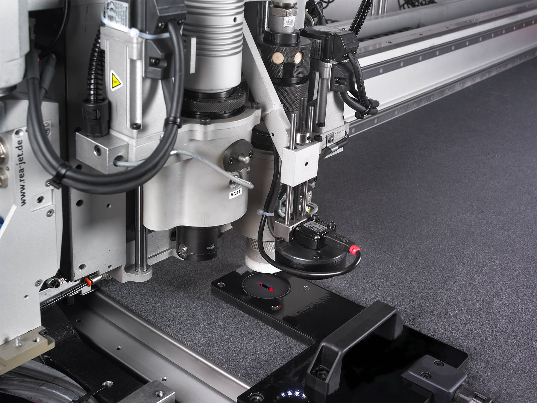 The robust structure and state-of-the-art electronics allowed us to develop a modular cutting head, with two main tools & additional optional devices including a high-resolution ink-jet printer and camera to automatically acquire the shape reference points.